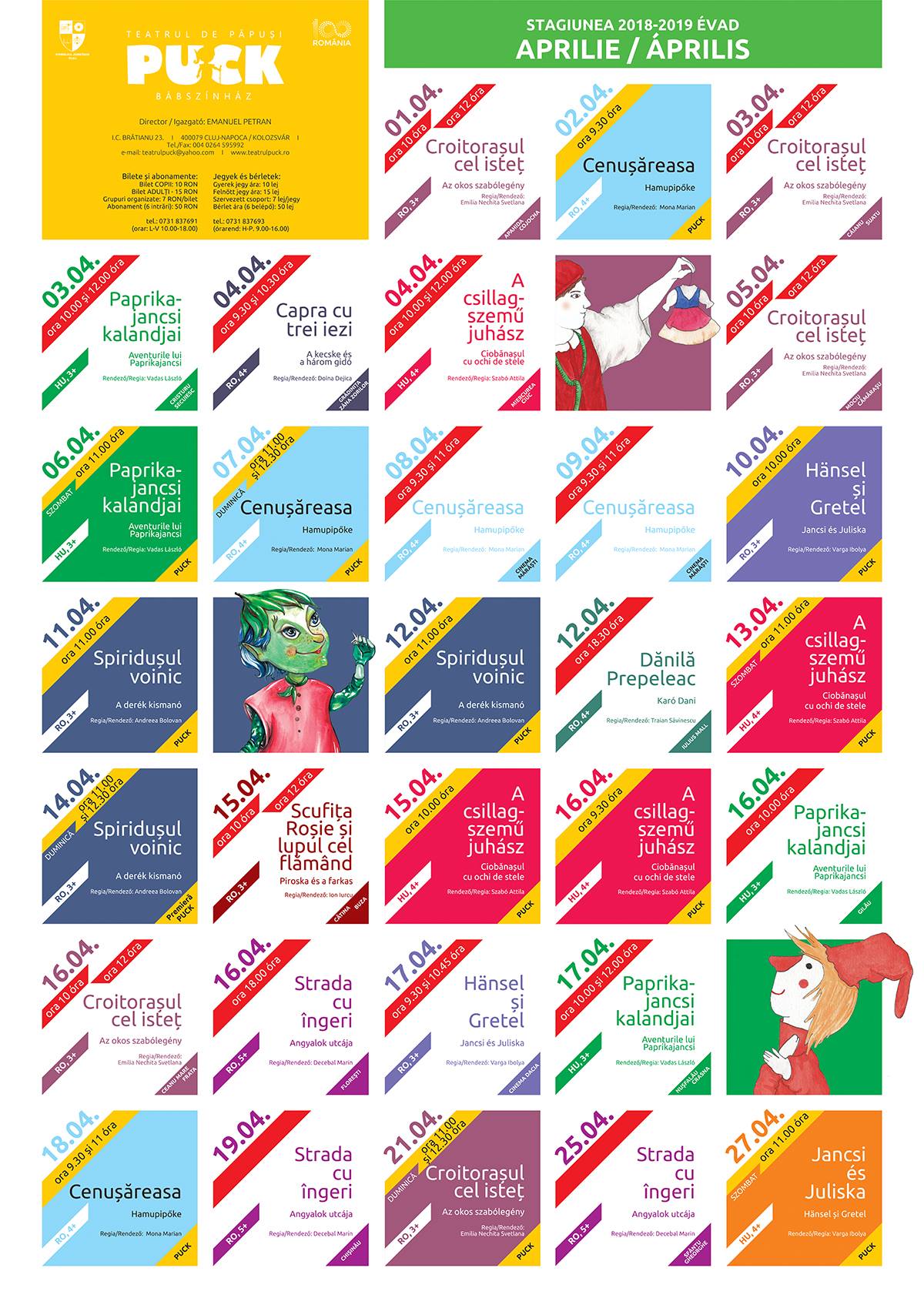 Cei mici sunt așteptați duminică 31 martie, de la orele 11 și 12.30, la spectacolul „Hänsel și Gretel”, după Frații Grimm, în regia Ibolyei Varga. Mesajul foarte înălțător al acestei povești este solidaritatea și iubirea de frate care poate să învingă și forțele malefice. De asemenea, sâmbătă, 30 martie, de la ora 11, este programată o reprezentație a spectacolului „Ciobănașul cu ochi de stele”/ „A csillagszemű juhász”, după o poveste populară, în regia și scenariul lui Szabó Attila.